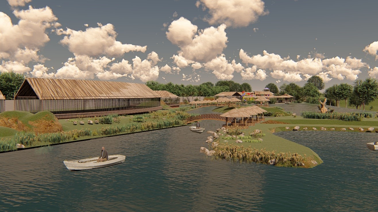 Hình 1: Nghiên cứu giải pháp phục hồi môi trường và cảnh quan sau khai thác khoáng sản (Ảnh: Phối cảnh mặt bằng sử dụng đất sau khai thác cụm mỏ VLSL Lộc An)