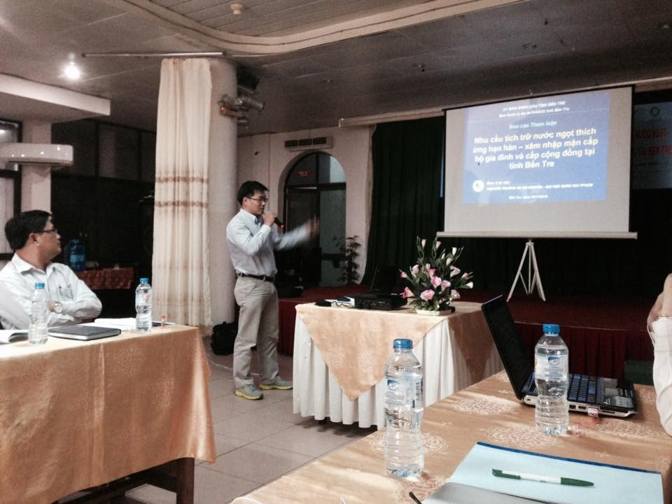 Hình 2: Báo cáo tham luận về “Nhu cầu tích trữ nước ngọt thích ứng hạn hán – xâm nhập mặn hộ gia đình và cấp cộng đồng tại tỉnh Bến Tre)