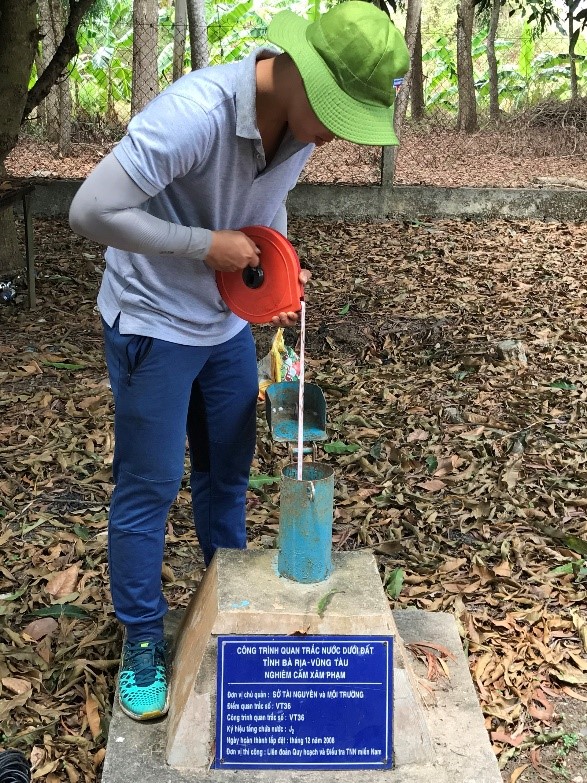 Hình 3: Quan trắc động thái tự nhiên các tầng chứa nước dưới đất, bơm thổi rửa và lấy mẫu phân tích chất lượng nước dưới đất trên địa bàn tỉnh BRVT