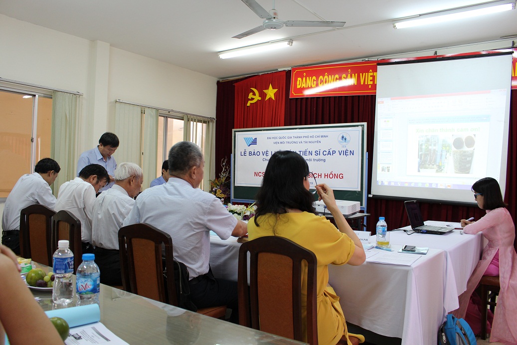 Buổi bảo vệ đã diễn ra long trọng tại Phòng Hội thảo - Viện Môi trường và Tài nguyên với sự có mặt của đông đảo NCS, cán bộ khoa học trong và ngoài Viện.