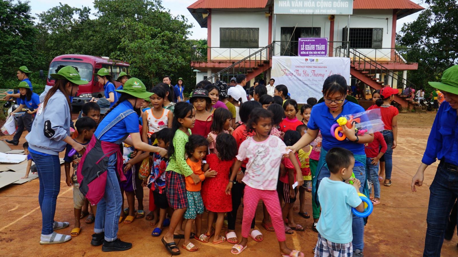 Đó là: 400 phần quà Trung thu cho các điểm trường tại xã Phú Riềng, 20 suất học bổng cho các em học sinh vượt khó học giỏi tại thôn Phú Bình; đoàn tình nguyện cũng đã đến thăm và tặng quà cho 4 gia đình thuộc diện khó khăn cũa xã; tài trợ thực hiện công trình “Đường bê tông thôn Phú Bình” giúp các em nhỏ thuận tiện hơn trong việc đến trường.