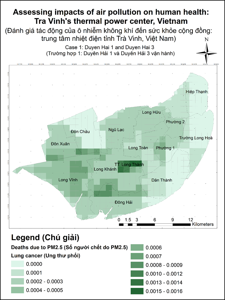 Ô nhiễm không khí hiện nay khá nặng và càng ngày ô nhiễm, một trong những nguyên nhân là do nhận thức và kiến thức về ô nhiễm không khí chưa cao. Nên có ít giải pháp và chưa hiệu quả để giảm ô nhiễm không khí. Vì vậy cần có các nghiên cứu và công bố tác động ô nhiễm không khí đến sức khỏe. APAC đã thực hiện dự án “Mô phỏng và đánh giá chất lượng không khí của trung tâm nhiệt điện tỉnh Trà Vinh, Việt Nam” và dự án “Đánh giá tác động của ô nhiễm không khí đến sức khỏe cộng đồng: trung tâm nhiệt điện tỉnh Trà Vinh, Việt Nam”. Thời gian thực hiện: 2017-2018. Mục tiêu (i) Tính toán tác động của ô nhiễm không khí do 2 nhà máy nhiệt điện đang vận hành Duyên Hải 1 và Duyên Hải 3 thuộc Trung Tâm nhiệt điện tỉnh Trà Vinh đến sức khỏe cộng đồng; (ii) Tính toán tác động của ô nhiễm không khí do 2 dự án nhiệt điện sẽ vận hành Duyên Hải 2 và Duyên Hải 3-mở rộng đến sức khỏe cộng đồng thông qua 3 nhóm bệnh tử vong do bệnh ung thư phổi (lung cancer), bệnh liên quan tim – phổi (Cardio – pulmonary), bệnh thiếu máu cơ tim cục bộ mãn tính (ischemic heart disease (IHD).