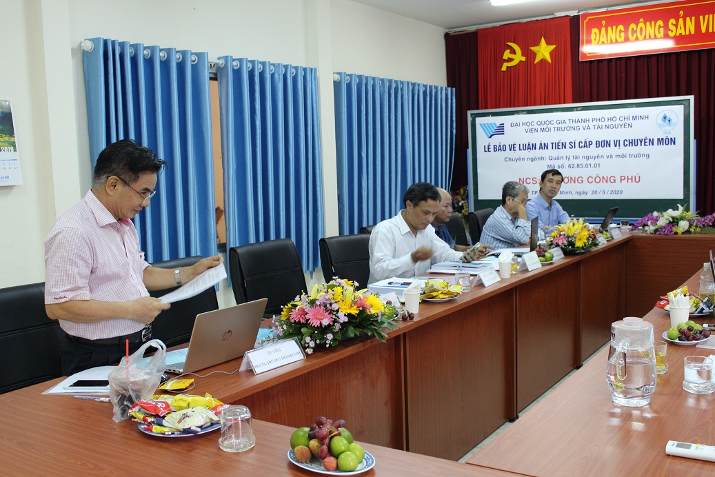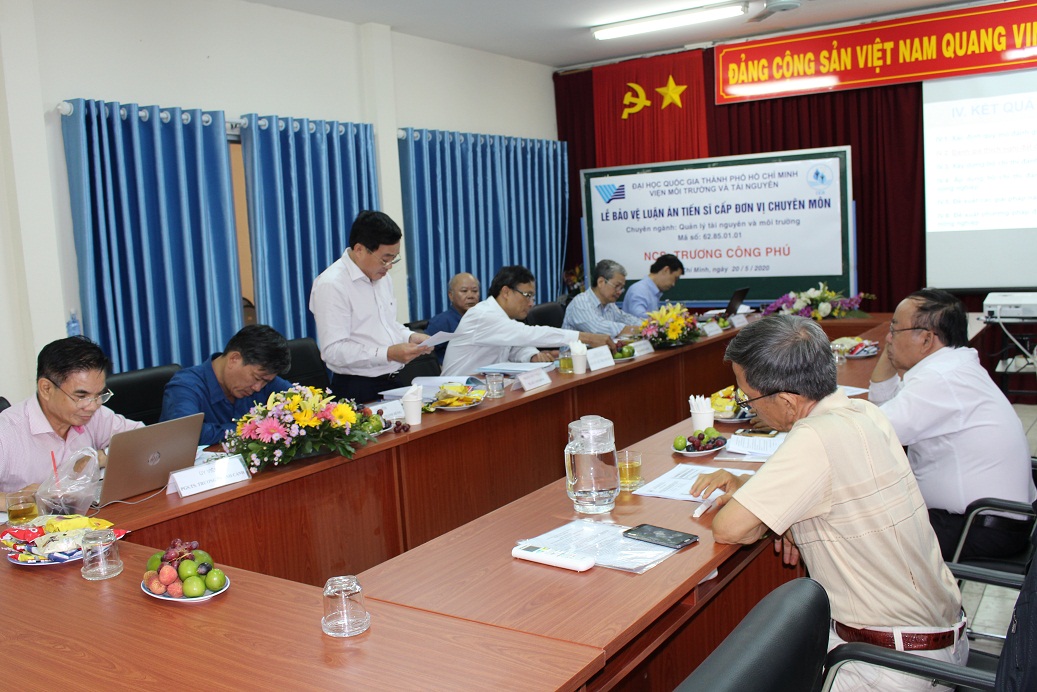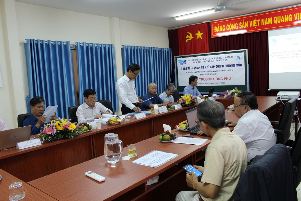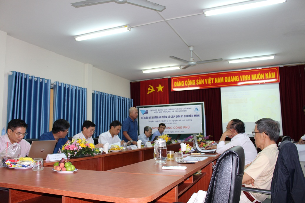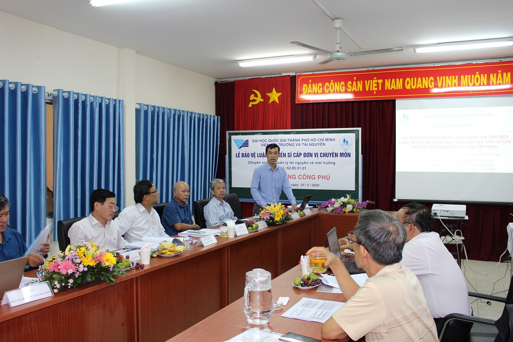 Chiều thứ Năm, ngày 20 tháng 5 năm 2020, Hội đồng chấm luận án tiến sĩ Viện Môi trường và Tài nguyên, Đại học Quốc gia TP. Hồ Chí Minh đã họp để chấm luận án tiến sĩ cấp Đơn vị chuyên môn cho NCS. Trương Công Phú, chuyên ngành Quản lý tài nguyên và môi trường, Mã số: 62.85.01.01 với đề tài: “ Xây dựng phương pháp luận đánh giá tính bền vững trong sử dụng đất nông nghiệp cấp Huyện: Trường hợp nghiên cứu Tỉnh Tây Ninh"