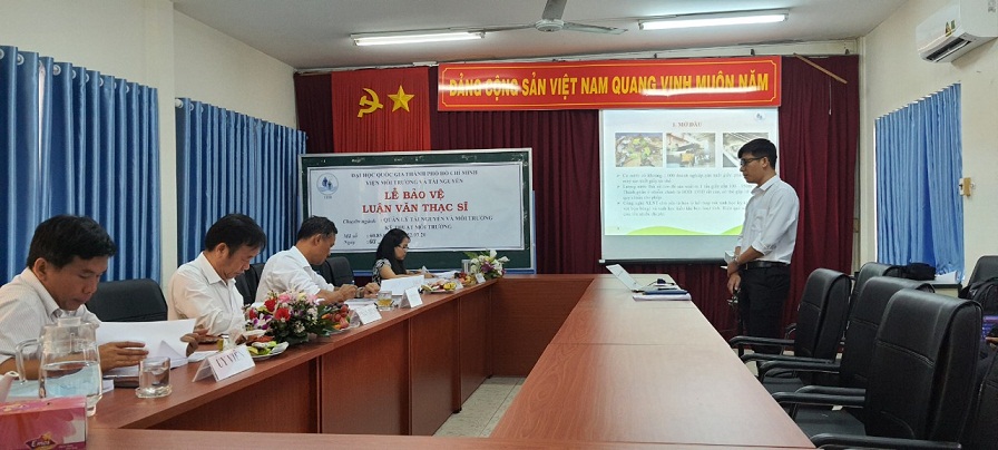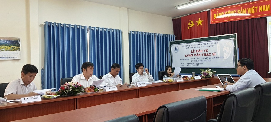 Nhằm đánh giá kết quả nghiên cứu thực hiện luận văn tốt nghiệp của học viên, thứ Ba, ngày 03/11/2020, Viện Môi trường và Tài nguyên, ĐHQG-HCM đã tổ chức Lễ bảo vệ luận văn Thạc sĩ cho 13 học viên cao học khóa 2017 & 2018 ngành Quản lý tài nguyên và môi trường (QLTN&MT) và ngành Kỹ thuật môi trường (KTMT). Tham gia hội đồng đánh giá đề tài luận văn có các nhà khoa học trong và ngoài Viện.