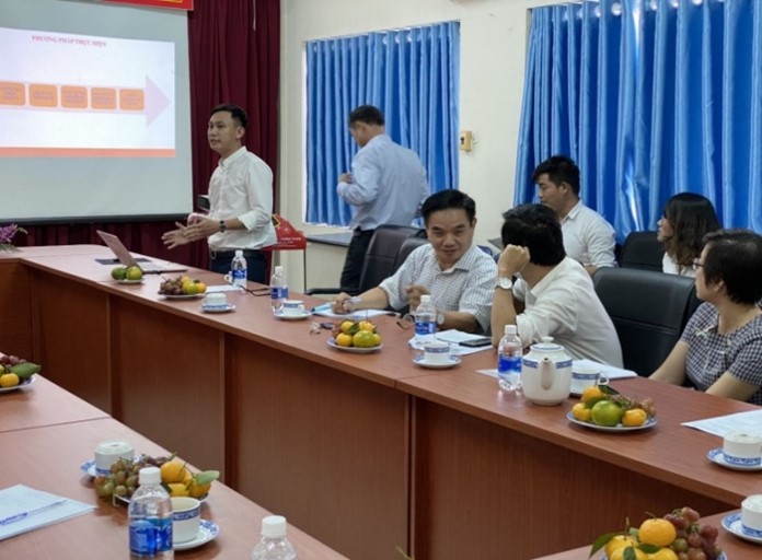Hình 2. Đại diện nhóm nghiên cứu trình bày các mô hình thí điểm không phát thải hướng đến ngăn ngừa ô nhiễm cho cụm dân cư nông thôn