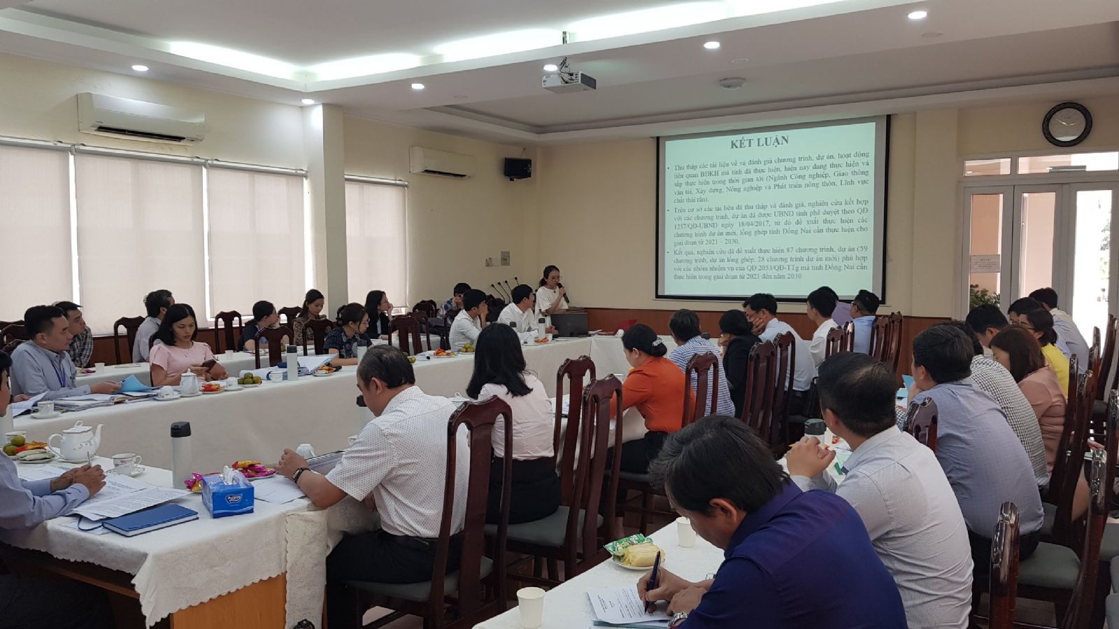 Tại hội thảo, Viện Môi trường và Tài nguyên đã trình bày kết quả thực hiện nhiệm vụ và dự thảo Kế hoạch thực hiện thỏa thuận Paris về biến đổi khí hậu trên địa bàn tỉnh Đồng Nai, qua đó nhằm lắng nghe, giải trình và tiếp thu ý kiến của các đại biểu về dự thảo kế hoạch thực hiện thỏa thuận Paris trên địa bàn tỉnh Đồng Nai. Ngoài ra, hội thảo còn được lắng nghe các báo cáo tham luận của GS.TS. Nguyễn Kim Lợi - Đại học Nông Lâm TPHCM, PGS.TS. Đào Nguyên Khôi - Đại học Khoa học tự nhiên ĐHQG-HCM và TS. Lê Hữu Quỳnh Anh - Đạ học Tài nguyên và Môi trường TP.HCM.