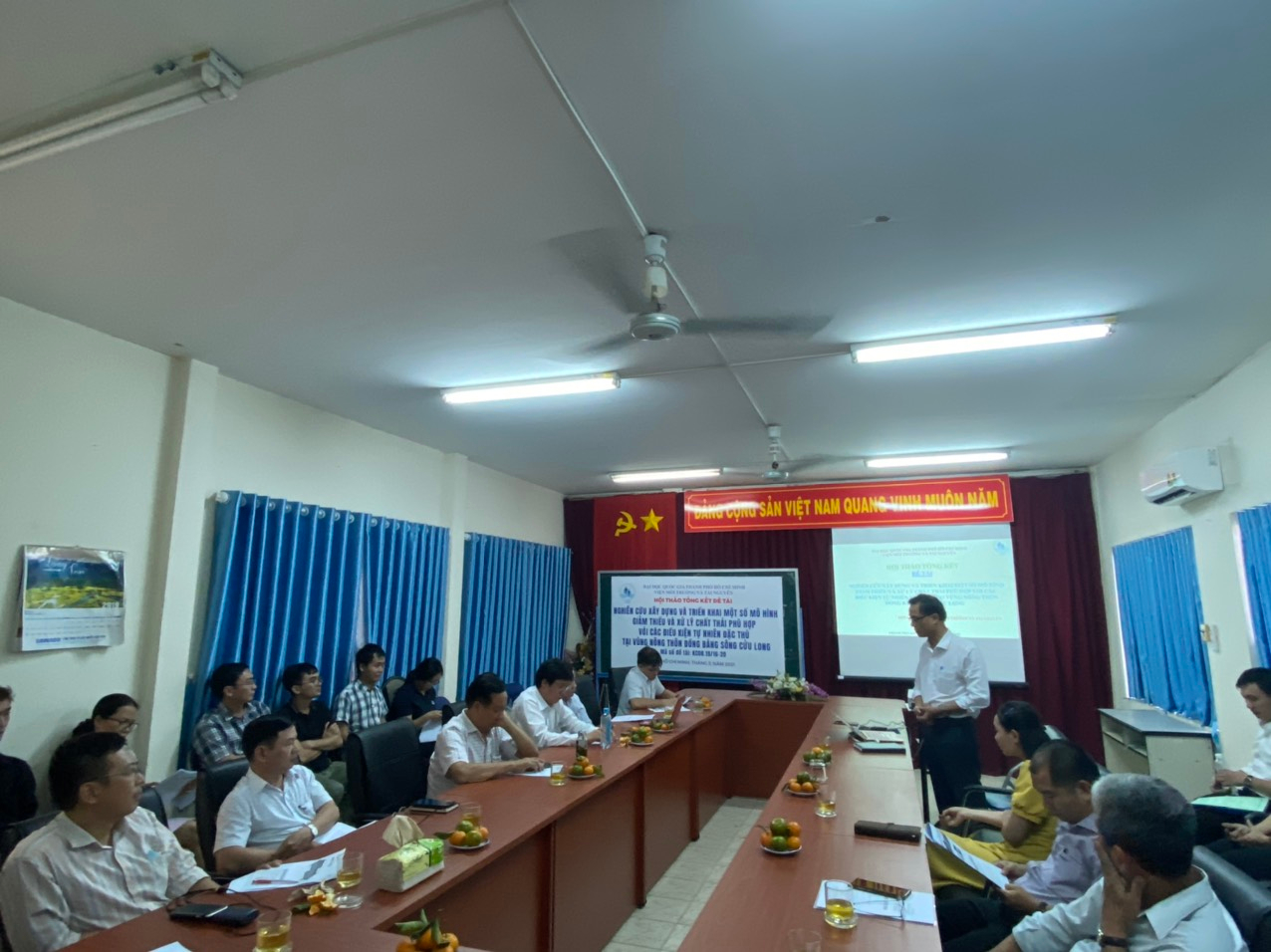 Trong khuôn khổ Chương trình “Nghiên cứu khoa học và công nghệ phục vụ bảo vệ môi trường và phòng tránh thiên tai (Mã số: KC.08/16-20)”, Cơ quan chủ trì - Viện Môi trường và Tài nguyên – Đại học Quốc gia TP.HCM đã tổ chức Hội thảo tổng kết đề tài “Nghiên cứu xây dựng và triển khai một số mô hình giảm thiểu và xử lý chất thải phù hợp với các điều kiện tự nhiên đặc thù tại vùng nông thôn đồng bằng sông Cửu Long” Mã số đề tài: KC08.19/16-20. Hội thảo có sự tham gia của các chuyên gia đến từ các trường Đại học, Viện nghiên cứu trên địa bàn TP.HCM, cán bộ và học viên của Viện Môi trường và Tài nguyên.