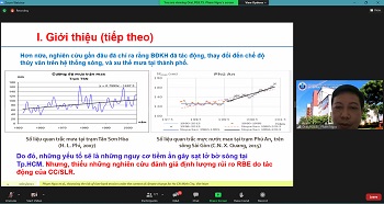 "Hội thảo hôm nay còn là một sự kiện đầy ý nghĩa nhân dịp Kỷ niệm 25 năm thành lập Viện MT&TN. Viện MTTN chính thức ra đời năm 1996, tính đến nay là tròn 25 năm, nhưng đã có khoảng 10 năm hoạt động trước đó với các tên gọi khác nhau. Như vậy, trải qua gần 35 năm hình thành, xây dựng và phát triển, chúng tôi có thể tự hào nói rằng, Viện MT&TN đã có những đóng góp không nhỏ cho xã hội liên quan đến mọi mặt của công tác NCKH, đào tạo và CGCN trong lĩnh vực môi trường, tài nguyên và BĐKH, góp phần tích cực xây dựng và phát triển mô hình đại học định hướng nghiên cứu ứng dụng trong hệ thống ĐHQG-HCM; tạo ra một môi trường thuận lợi cho sự hợp tác, liên kết giữa các nhà quản lý và các đồng nghiệp khoa học trong cùng lĩnh vực.