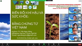 Ngày 15/10/2021, nhân dịp kỷ niệm 25 năm thành lập Viện, Viện Môi trường và Tài nguyên phối hợp cùng Đại học Dublin tổ chức hội thảo trực tuyến IER-25 với chủ đề “Quản lý Môi trường khu vực Đô thị và Công nghiệp” và Hội thảo HealthyAir về “Mô phỏng tác động ô nhiễm không khí và biến đổi khí hậu lên sức khỏe cộng đồng”.