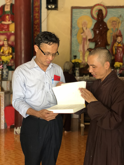 Cuối buổi từ thiện, thầy An Đạt đã tặng Thầy Lê Thanh Hải một cuốn Kinh Phật để cảm ơn tấm lòng của thầy Hải cho bà con ở xã Nhựt Chánh này.