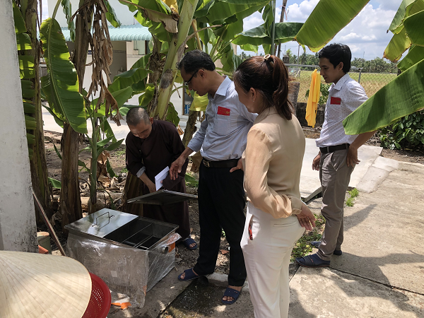 Một chuyện vui của buổi từ thiện, với chuyên môn về Môi trường, đoàn đã tư vấn và hướng dẫn về nguyên lý hoạt động và hiệu quả hoạt động của bể tách dầu cho nước thải nhà ăn của chùa.