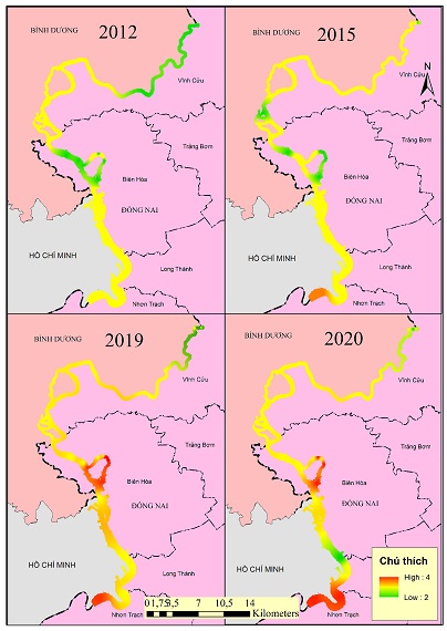 Hình 6. Phân vùng chất lượng nước sông Đồng Nai giai đoạn 2012-2020