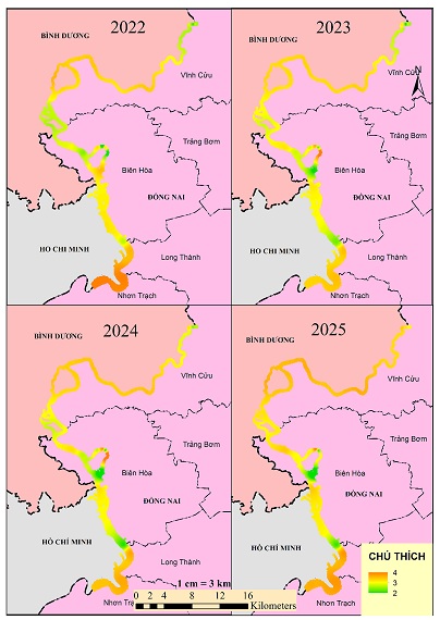 Hình 7. Bản đồ phân vùng chất lượng nước sông Đồng Nai năm 2022 - 2025