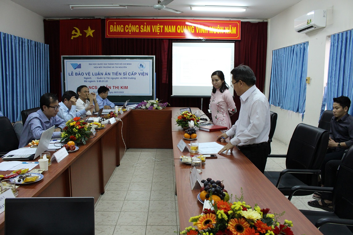 Dưới sự hướng dẫn khoa học của GS.TS. Nguyễn Kỳ Phùng và GS.TS. Nguyễn Văn Phước, chiều ngày 06/01/2022, NCS. Trần Thị Kim đã bảo vệ thành công luận án Tiến sĩ kỹ thuật cấp Viện tại Hội đồng chấm luận án Viện Môi trường và Tài nguyên, Đại học Quốc gia TP. Hồ Chí Minh