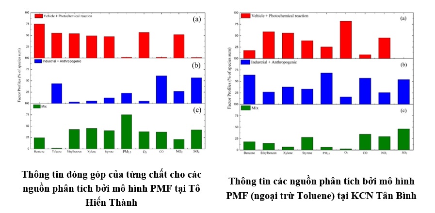 Bên cạnh đó, nghiên cứu đã sử dụng phương pháp phân tích hệ số ma trận dương (Positive Matrix Factor - PMF) để phân tích nồng độ BTEX đo được tại hai vị trí lấy mẫu đại diện cho khu dân cư (tại đường Tô Hiến Thành) và khu công nghiệp (tại Khu công nghiệp Tân Bình).