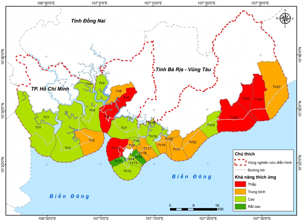 Hình 3. Một số kết quả đạt được (bản đồ phân vùng độ nhạy, bản đồ phân vùng khả năng thích ứng và bản đồ phân vùng tình dễ bị tổn thương)