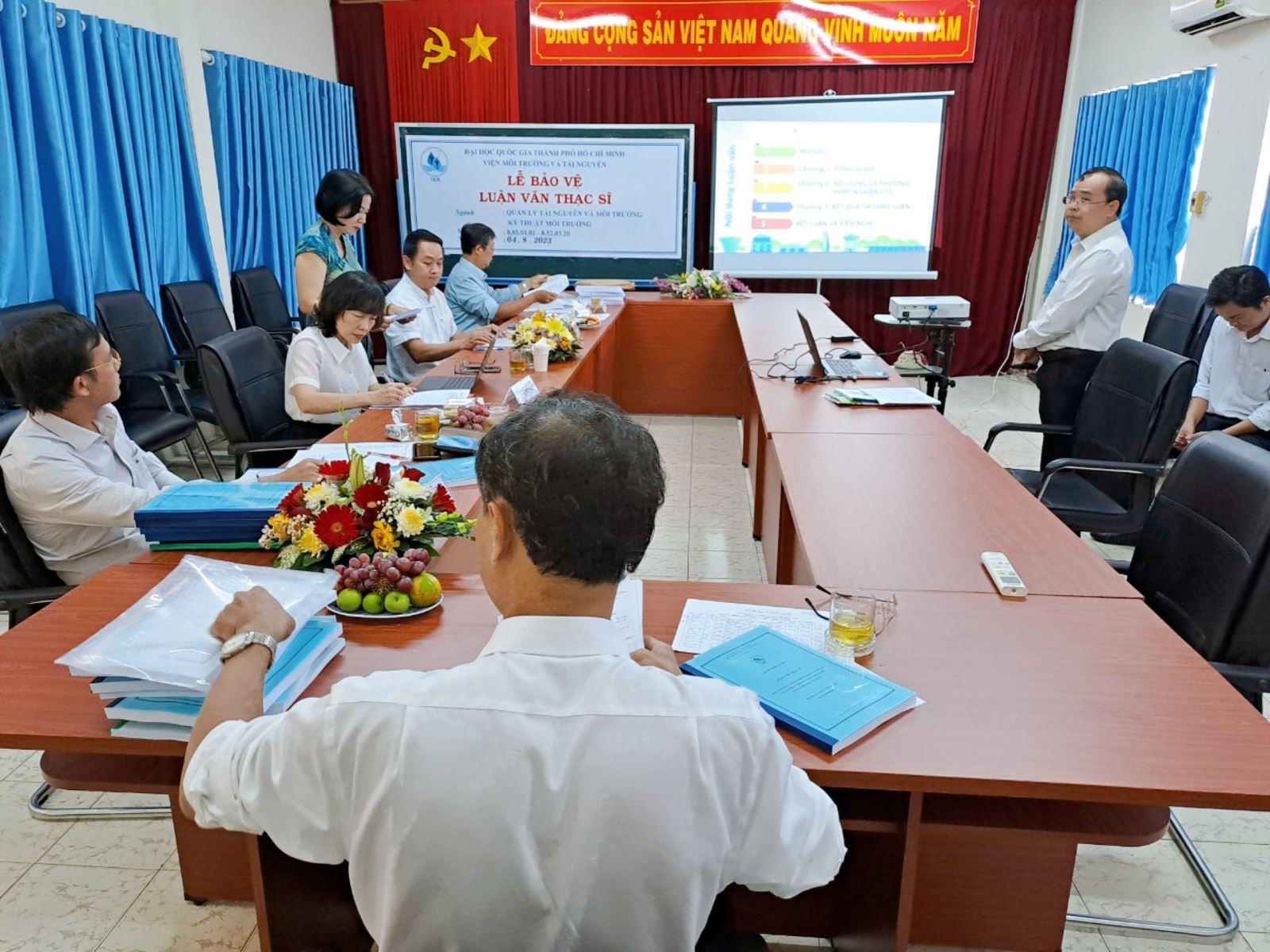 Nhằm đánh giá kết quả nghiên cứu thực hiện luận văn tốt nghiệp của học viên, thứ Sáu, ngày 04/8/2023, Viện Môi trường và Tài nguyên, ĐHQG-HCM đã tổ chức Lễ bảo vệ luận văn Thạc sĩ cho 17 học viên cao học khóa 2020 ngành Kỹ thuật môi trường (KTMT), đây là các học viên đang công tác thuộc Tổng công ty cấp nước Sài Gòn (Sawaco). Tham gia hội đồng đánh giá đề tài luận văn có các nhà khoa học trong và ngoài Viện.