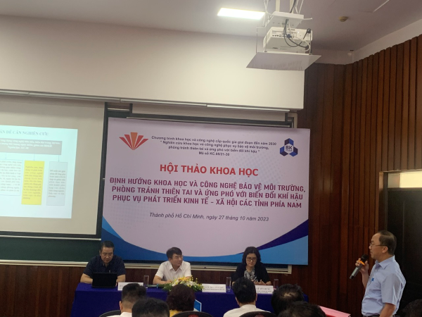Ngày 27 tháng 10 năm 2023, Văn phòng Chương trình trọng điểm cấp nhà nước đã phối hợp với Ban Chủ nhiệm Chương trình KC08/21-30 tổ chức Hội thảo “Định hướng khoa học và công nghệ bảo vệ môi trường, phòng tránh thiên tai và ứng phó với biến đổi khí hậu phục vụ phát triển kinh tế - xã hội các tỉnh phía Nam”.