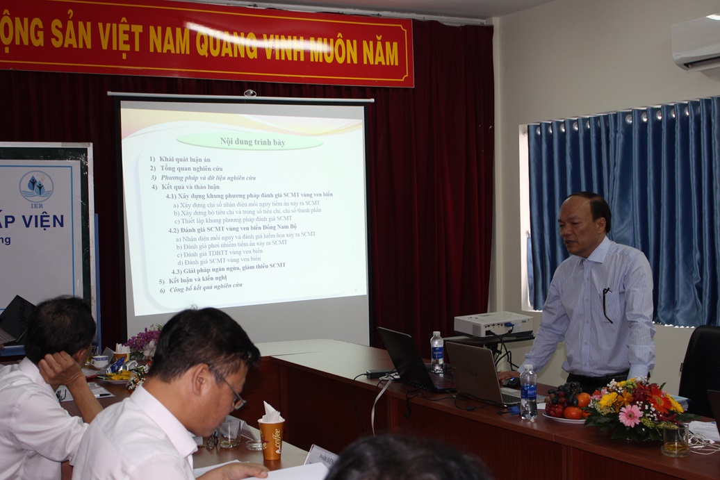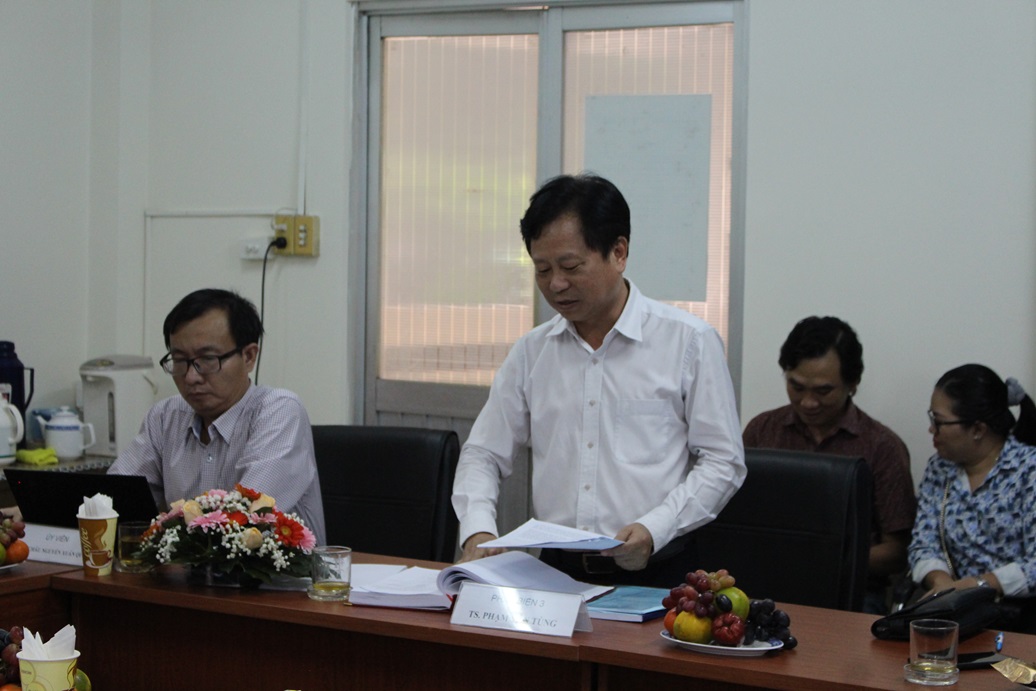 GS.TS. Nguyễn Việt Anh (Trường ĐH Xây dựng Hà Nội), chủ tịch Hội đồng đã điều khiển phiên họp. Ba người phản biện của luận án tiến sĩ bao gồm: PGS.TS. Phùng Chí Sỹ (Trung tâm công nghệ môi trường ENTEC); PGS.TS. Vũ Văn Nghị (Trường ĐH KHTN - ĐHQG-HCM) và TS. Phạm Văn Tùng (Viện Kỹ thuật Biển). Hội đồng có sự tham gia của hai ủy viên là GS.TS. Lê Thanh Hải và PGS.TS. Châu Nguyễn Xuân Quang cùng thư ký hội đồng là TS. Nguyễn Thanh Hùng (Viện MT&TN – ĐHQG-HCM). Buổi bảo vệ đã diễn ra long trọng với sự tham gia của GVHD, cán bộ khoa học, NCS, HVCH trong và ngoài Viện.