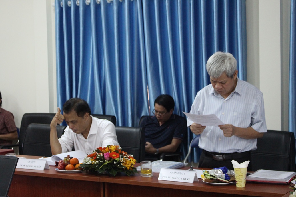 Hình 4. GS.TS. Nguyễn Văn Phước (đại diện tập thể GVHD) nhận xét đánh giá quá trình học tập của NCS