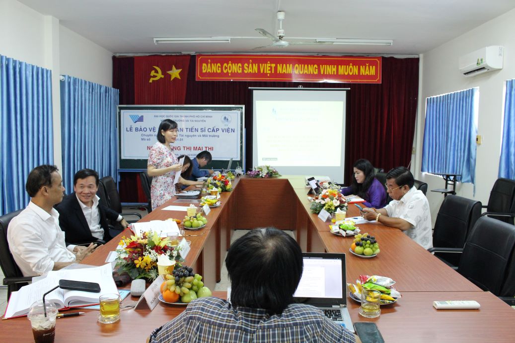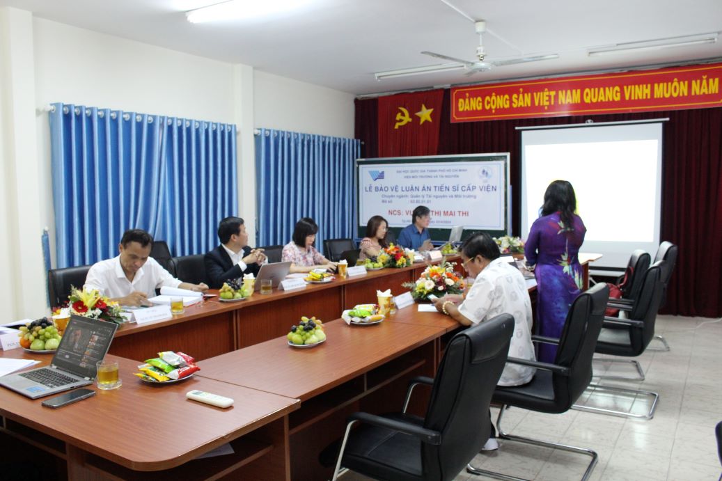 NCS đã có 05 công bố liên quan đến luận án trong đó có 01 công bố quốc tế Scopus (IOP Hội thảo quốc tế) và 04 công bố trong nước tại Tạp chí Phát triển Khoa học và Công nghệ ĐHQG-HCM (chuyên san Khoa học Trái đất và Môi trường), Tạp chí Khoa học BĐKH và Tạp chí Môi trường (đều thuộc danh mục theo qui định của HĐGSNN). Luận án hội đủ các điều kiện cần thiết đối với luận án tiến sĩ (với 7 phiếu tán thành). Hội đồng chấm luận án Tiến sĩ cấp Viện thống nhất và kiến nghị cơ sở đào tạo công nhận trình độ và cấp bằng Tiến sĩ cho nghiên cứu sinh Vương Thị Mai Thi.