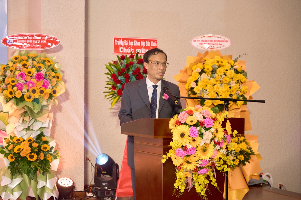 Hình 1. GS.TS. Lê Thanh Hải, Viện trưởng Viện MT&TN đọc diễn văn tại Lễ khai giảng và trao bằng tốt nghiệp