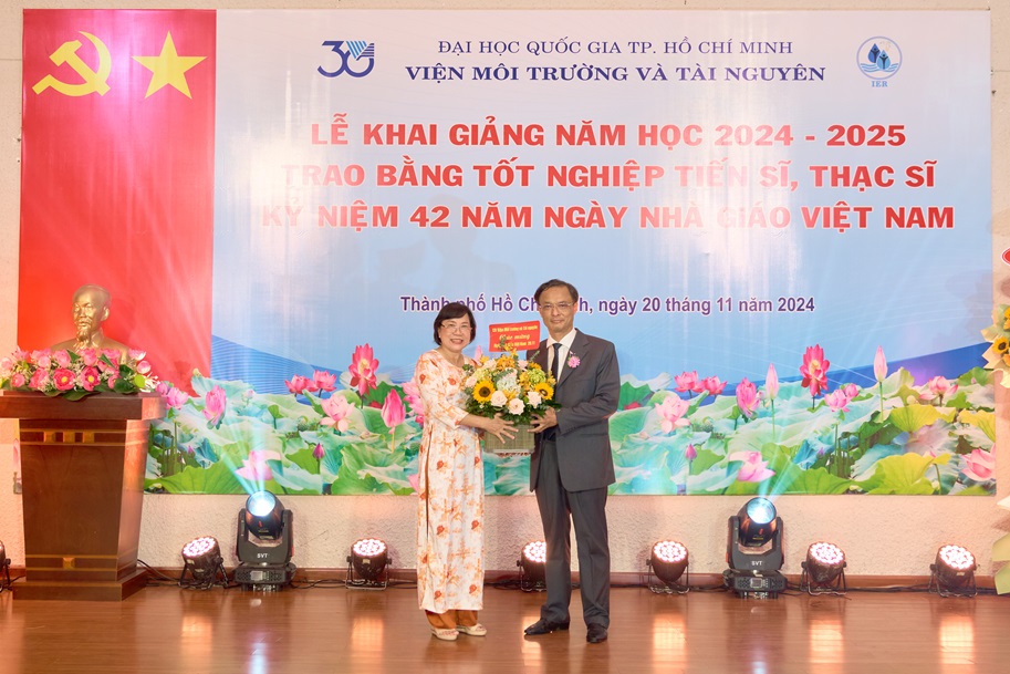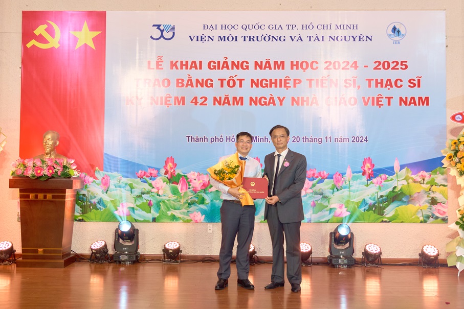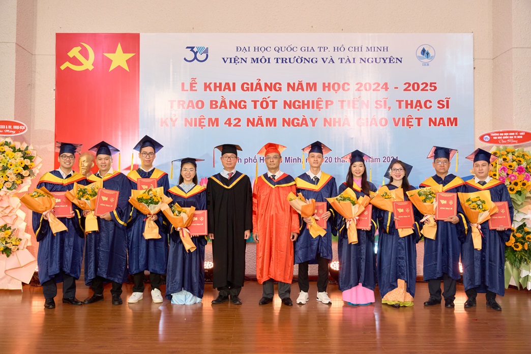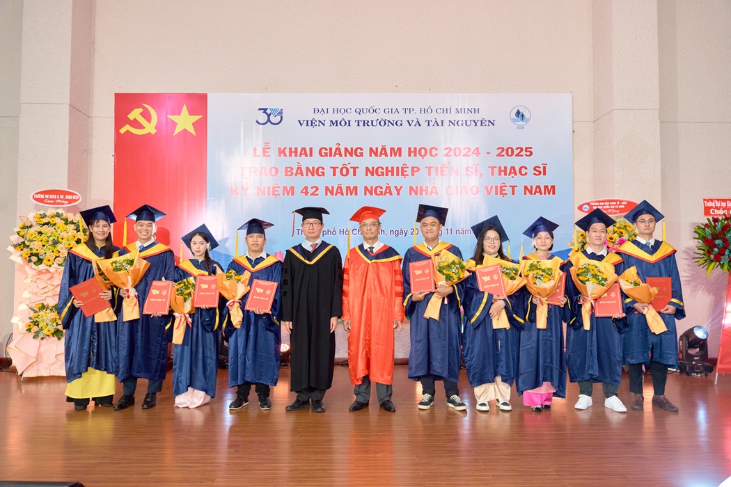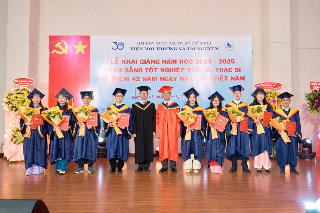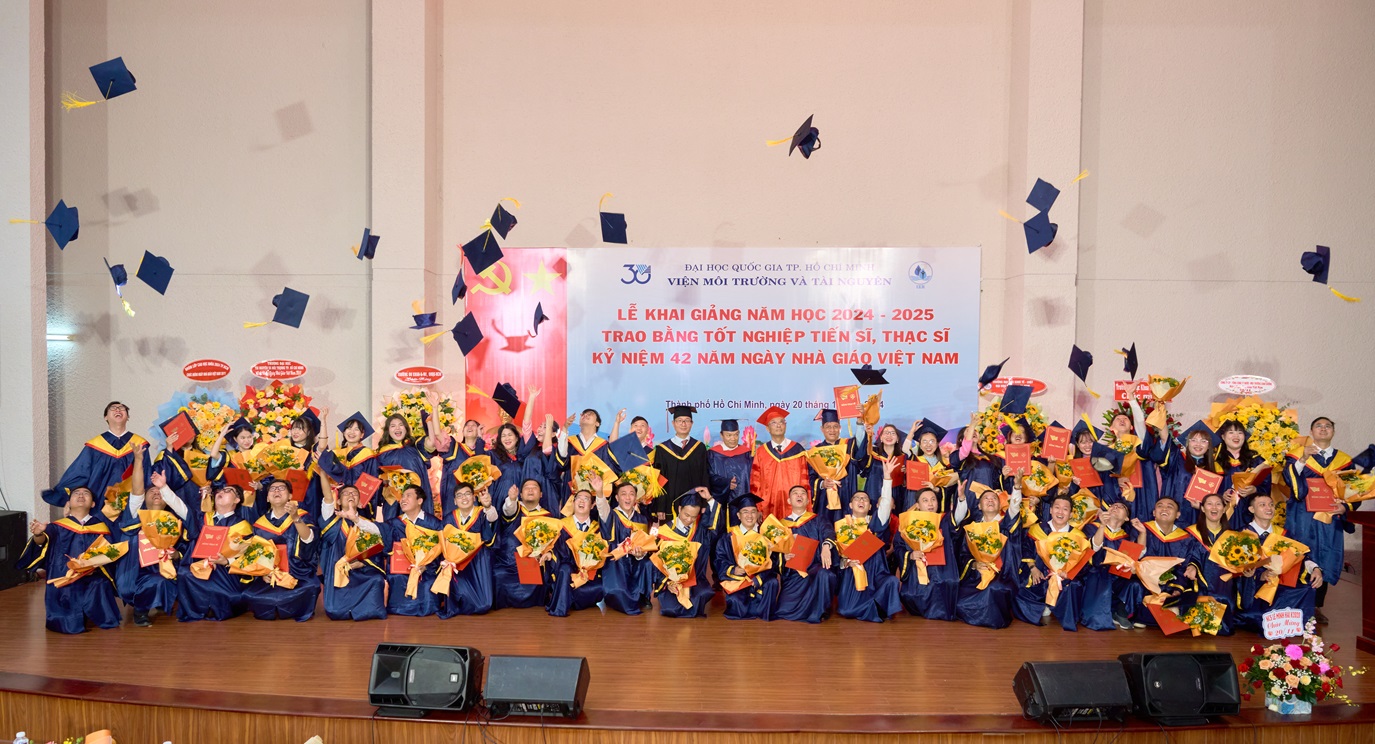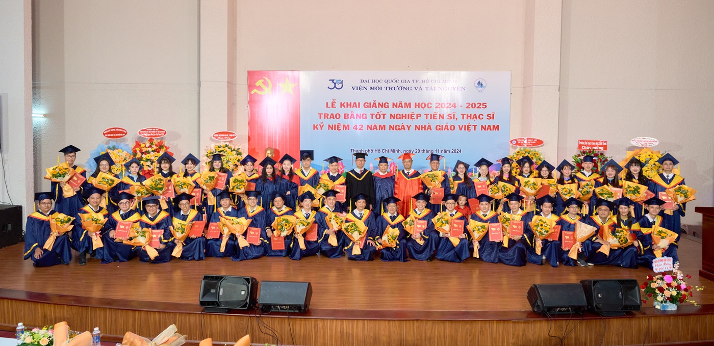 Sáng ngày 20/11/2024, Viện Môi trường và Tài nguyên - ĐHQG-HCM (cơ sở Dĩ An, Bình Dương) đã long trọng tổ chức Lễ khai giảng năm học mới 2024 – 2025, Lễ kỷ niệm 42 năm ngày Nhà giáo Việt Nam 20/11 và Lễ.trao bằng tốt nghiệp Tiến sĩ, Thạc sĩ.