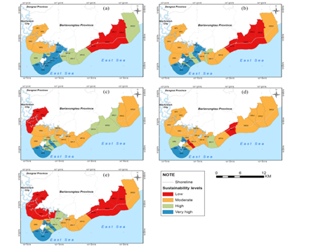 Nghiên cứu điển hình được thực hiện tại 23 tiểu vùng thuộc khu vực ven biển tỉnh Bà Rịa – Vũng Tàu, Việt Nam. Nghiên cứu đã phân loại tính bền vững của 23 tiểu vùng thành 04 mức độ: Thấp, trung bình, cao và rất cao, lần lượt chiếm 30,43%, 30,43%, 13,04% và 26,09%. Sau cùng, dựa trên kết quả phân tích, tổng hợp và tham vấn các nhà quản lý, chuyên gia am hiểu lĩnh vực nghiên cứu, các giải pháp thực tiễn đã được đề xuất nhằm nâng cao tính bền vững đối với các tiểu vùng có mức độ bền vững thấp và trung bình. Những giải pháp này hứa hẹn hỗ trợ đắc lực các nhà thực thi và hoạch định chính sách trong việc ra quyết định liên quan đến phát triển bền vững vùng ven biển.