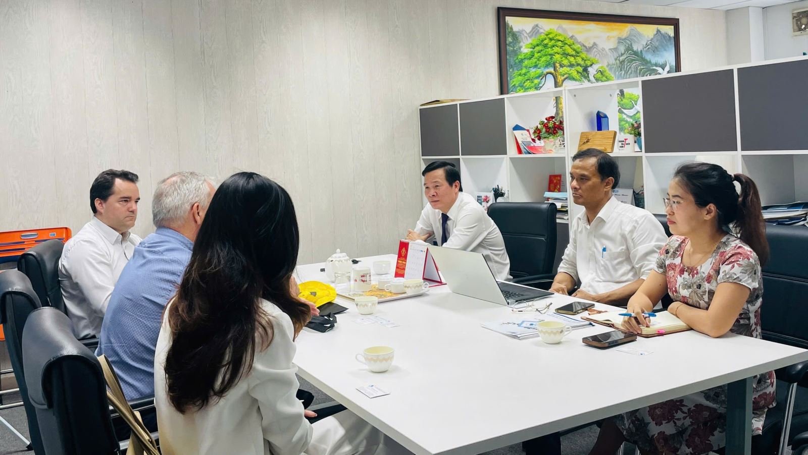 Viện Môi trường và Tài nguyên đón tiếp đoàn khách dưới sự chủ trì của GS.TS.NGƯT. Lê Thanh Hải - Viện trưởng, PGS.TS. Hồ Quốc Bằng - Giám đốc Trung tâm Nghiên cứu ONKK và BĐKH (APPAC) và PGS.TS. Đỗ Thị Thu Huyền - Trưởng phòng QLKH&QHĐN.