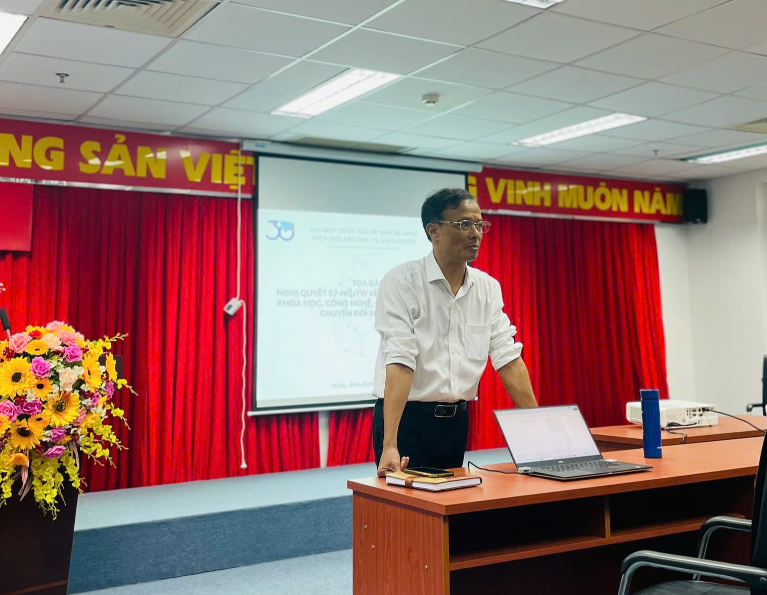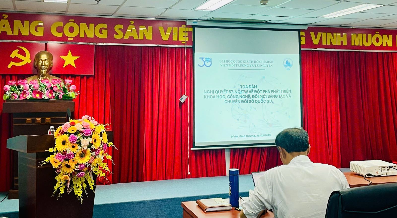 Sáng ngày 20/02/2025, Viện Môi trường và Tài nguyên đã tổ chức buổi tọa đàm với chủ đề "Nghị quyết 57-NQ/TW về Đột phá phát triển khoa học, công nghệ, đổi mới sáng tạo và chuyển đổi số quốc gia". Buổi tọa đàm nhằm phân tích sâu nội dung nghị quyết, xác định vai trò của Viện trong nghiên cứu và ứng dụng khoa học – công nghệ (KH-CN), đồng thời đề xuất các giải pháp triển khai phù hợp với chiến lược phát triển của Viện