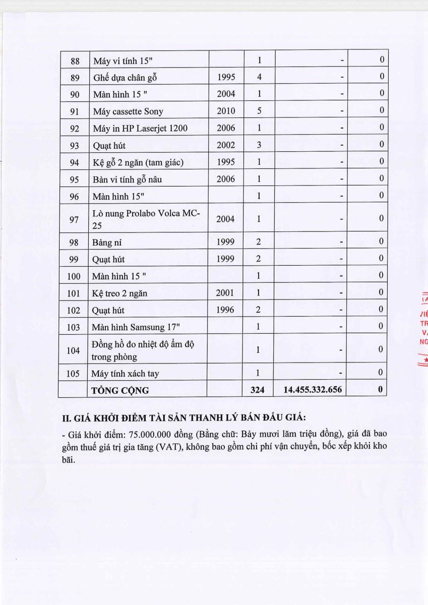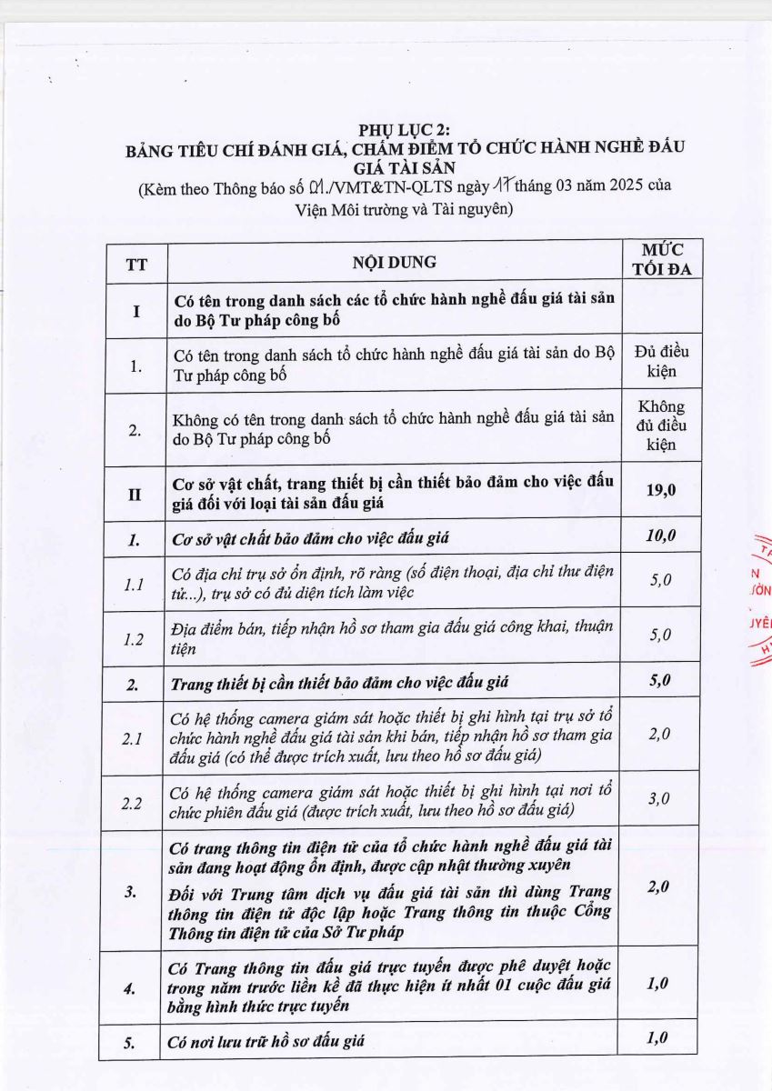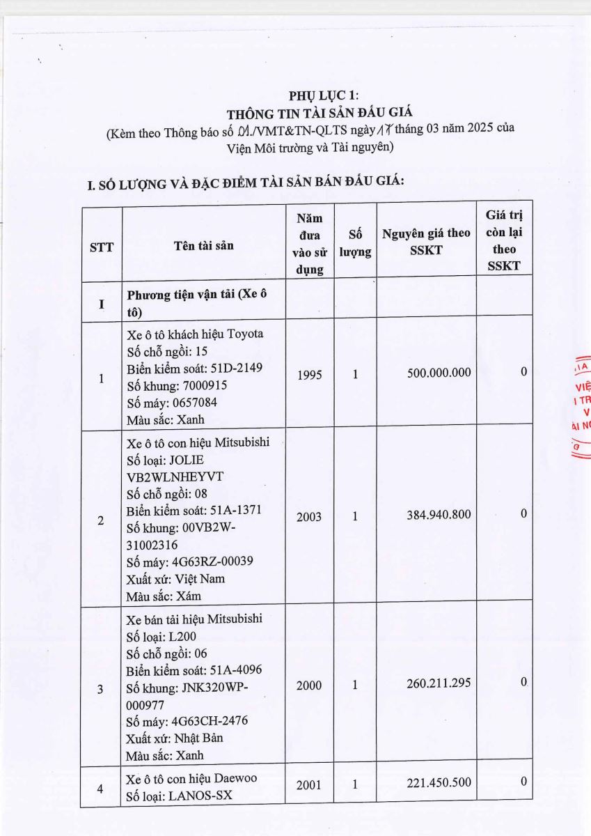Công khai lựa chọn đơn vị tổ chức đấu giá tài sản thanh lý tại Viện Môi trường và Tài nguyên