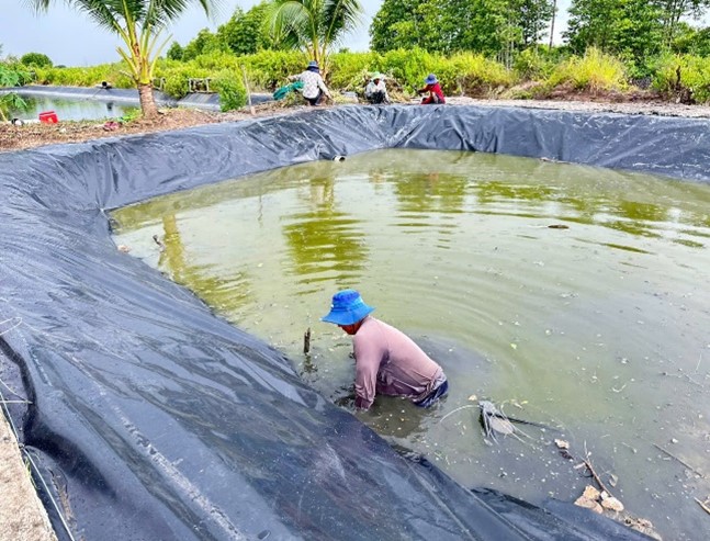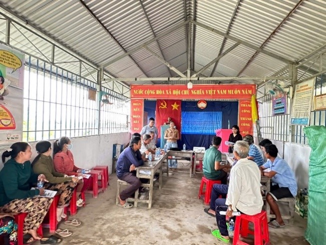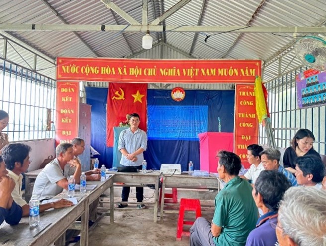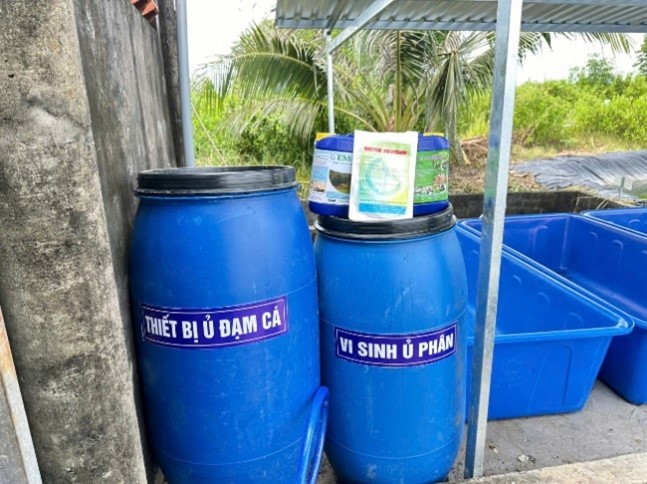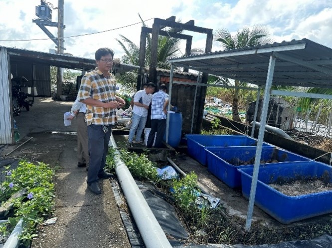 Trong đó, sản phẩm 03 mô hình thí điểm đã áp dụng nhiều kỹ thuật SXSH-TKNL và thực hành tốt nhất và các kỹ thuật giảm thiểu và xử lý chất thải giúp các hộ dân tạo ra giá trị kinh tế từ các sinh kế mới, giảm tác động đến môi trường và thích ứng với các điều kiện bất lợi tại tỉnh Cà Mau. Các thông tin hạng mục thiết kế, quy trình vận hành và hướng dẫn xử lý nước thải, bùn thải, ủ phân, sản xuất biochar,... được mô tả chi tiết trong các sổ tay hướng dẫn thực hiện và vận hành mô hình (là một trong những sản phẩm của đề tài). Sau khi triển khai mô hình thí điểm tại 03 hộ điển hình cho 03 khu vực sinh thái có điều kiện tự nhiên bất lợi, Nhóm thực hiện cũng đã tổ chức buổi tập huấn chuyển giao công nghệ cho cán bộ xã và các hộ dân từ ngày 10 – 12/12/2024 tại UBND xã Quách Phẩm (huyện Đầm Dơi), UBND xã Trần Hợi (huyện Trần Văn Thời) và UBND xã Khánh Thuận (huyện U Minh) thu hút hơn 70 hộ dân tham gia.