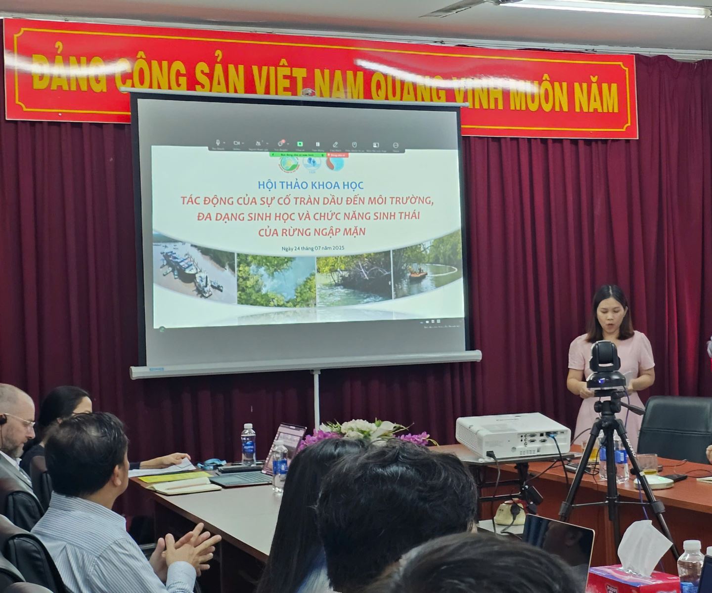 Ngày 25/4/2025, vụ va chạm giữa hai tàu KMTC Surabaya và Glengyle trên sông Lòng Tàu (thuộc huyện Cần Giờ cũ) đã gây ra sự cố tràn dầu, làm dấy lên nhiều lo ngại về tác động môi trường đối với hệ sinh thái rừng ngập mặn khu vực. Nhằm tạo diễn đàn chia sẻ thông tin khoa học và lắng nghe ý kiến chuyên môn, ngày 24/7/2025, Sở Nông nghiệp và Môi trường TP. Hồ Chí Minh đã phối hợp tổ chức hội thảo với chủ đề “Tác động của sự cố tràn dầu đến môi trường, đa dạng sinh học và chức năng sinh thái của rừng ngập mặn” tại Viện Môi trường và Tài nguyên – ĐHQG-HCM.